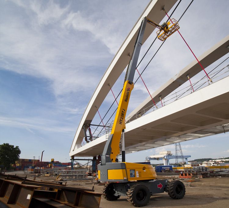 法國(guó)Haulotte生產(chǎn)的HT23RTJ PRO型是一款小臂不但可以上下旋轉(zhuǎn),也可以左右旋轉(zhuǎn)的直臂式升降車,可以在高空作業(yè)的時(shí)候擁有更高的效率和穩(wěn)定安全性,該機(jī)型具有雙承載能力230kg/450kg (選配),配置有Haulotte Activ'Shield Bar 2.0 二次主動(dòng)防護(hù)系統(tǒng)(限PRO型號(hào))和Haulotte Activ'Lighting System 照明系統(tǒng),便于在夜間或者光線弱的環(huán)境下安全操作,HT23RTJ PRO動(dòng)作速度快,比例控制,可多動(dòng)作同步進(jìn)行,整機(jī)臂架結(jié)構(gòu)堅(jiān)固,操作舒適、安全,是一款性能穩(wěn)定,壽命長(zhǎng),方便靈活的直臂式升降車。