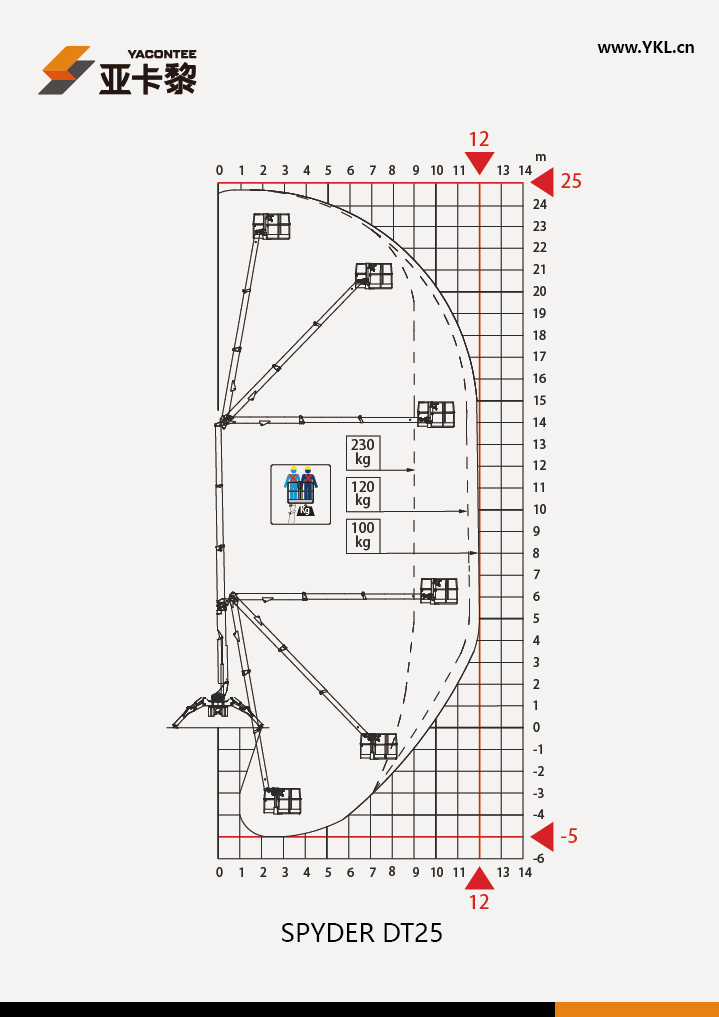 意大利思藍(lán)CELA公司生產(chǎn)的DT CRAWLER 25型是一款流行的,結(jié)構(gòu)緊湊,外觀精美,堅固耐用的蜘蛛車,所有的管線內(nèi)置于臂架,采用Can-bus總線的控制系統(tǒng),以及雙安全傳感器保護(hù)系統(tǒng)后,整個機器采用雙伸縮曲臂式設(shè)計,在水平延伸和跨越高度方面有無可比擬的優(yōu)勢,是一款在室內(nèi)狹小的地方使用的蜘蛛車,目前DT CRAWLER 25在商業(yè)中心,各種場館,高級辦公樓和機場、火車站等場合有廣泛的使用記錄,也是目前在國內(nèi)銷售比較多的蜘蛛車。